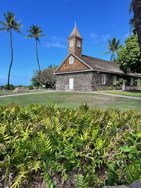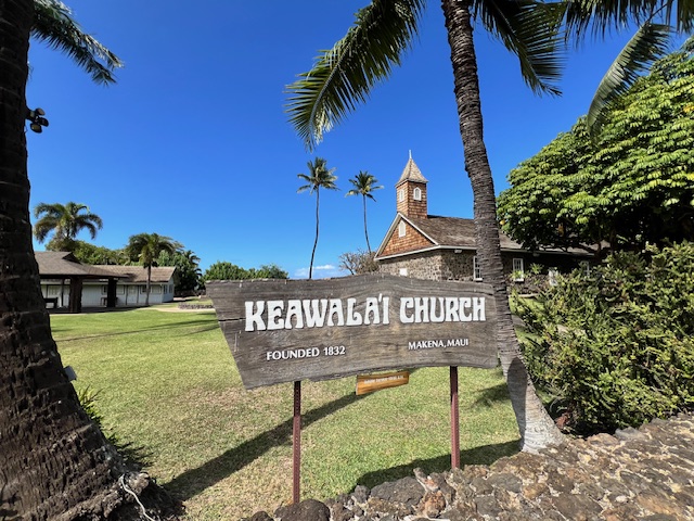 The first place of worship and instruction was established at Keawakapu, Ka‘eo, in 1825, as a thatched pili grass structure.[1] Several years later the members built a stone and wood church.[2] Then in August 1832 the church was organized, and mission records indicate that it was an outpost of the mother church at Wailuku. This was the same year that the church at Wailuku (Kaahumanu Chapel) was founded by Rev. J.S. Green, after a grant received by Kamehameha II.[3] Dwight Baldwin reported in 1832, during the first half of the year there was preaching at Wailuku seven sabbaths, one sabbath at Honuaula and several sabbaths at Kaanapali,[4] which seemed to be the pattern of pastoral care for several years following.